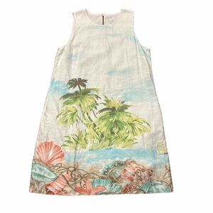 J. Jill Love Linen Dress Womens Large Palm Tree Sleeveless Pockets Tropical
