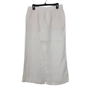 J Jill Love Linen Easy Linen Wide Leg Cropped Pants Sz M White Semi Sheer Coasta