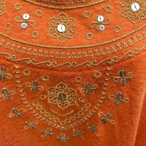 J. Jill Love Linen Embroidered & Beaded Scoop Neck Blouse Top Orange/Gold Size L