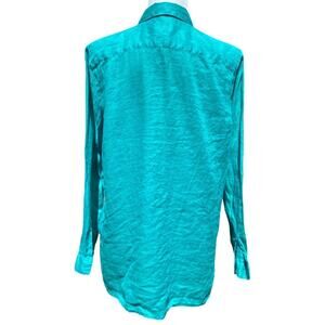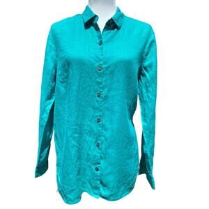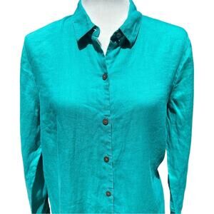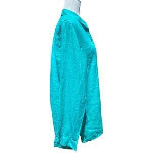 J. Jill Love Linen Essential Shirt Button Front Blouse Teal Aqua Medium
