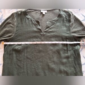 J Jill Love Linen Forest Green V Notch Neck Tunic Length Top