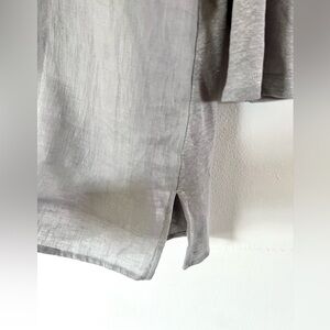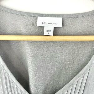J. Jill Love Linen Grey Pleated Placket ¾ Sleeve Tunic Top Size Large