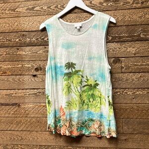 J Jill Love Linen Hawaiian Palm Tree Tank Top Shirt Women's Size XL