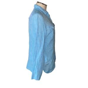 J. Jill Love Linen Lagenlook Blue Button Up Long Sleeve Shirt Size Small