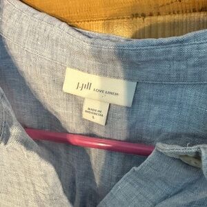 J Jill Love Linen Light Blue Lightweight Long Sleeve Button Down Top Size Large