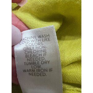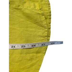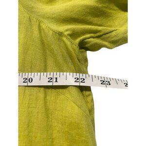 J Jill Love Linen Lime Green Button Up Tunic Blouse Lagenlook Roll Tab Sleeves
