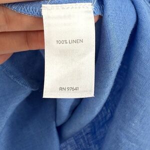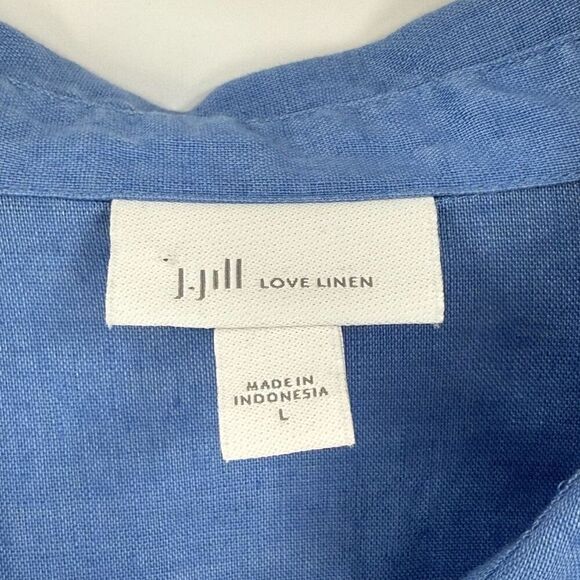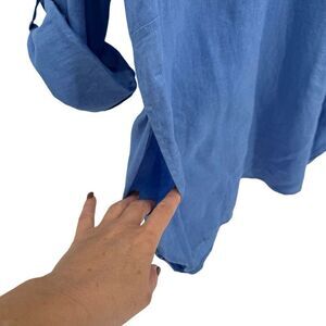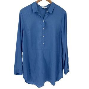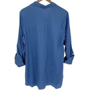 J Jill Love Linen Long Roll Tab Sleeve Half Button Tunic Top Blue Women Large