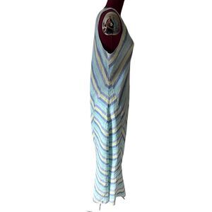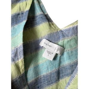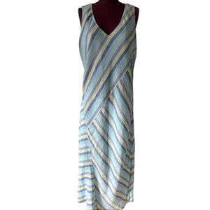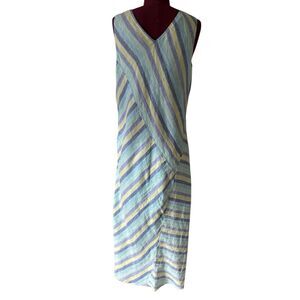 J Jill Love Linen Lotus Maxi Dress size L Striped Blue Green Lined