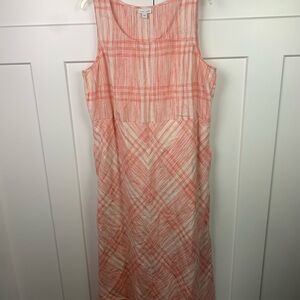 J Jill Love Linen Maxi Dress LARGE orange White Lagenlook Coastal Pockets