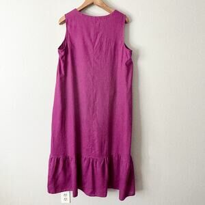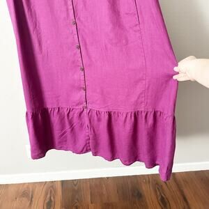 purple fuchsia 100% linen button front pockets at hips flounce hem unlined