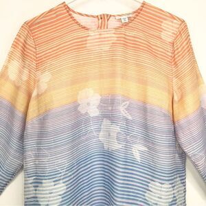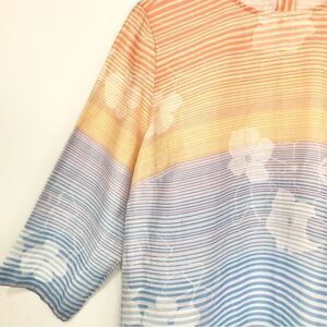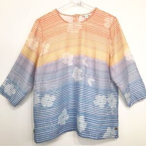 J. Jill Love Linen Multicolored Striped Floral Linen Popover Blouse