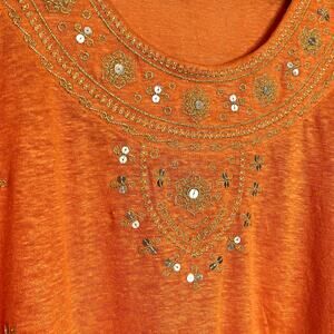 J. Jill Love Linen Orange Embellished Short Sleeve Blouse Size Medium