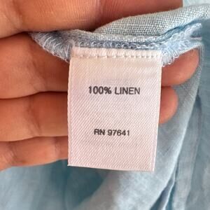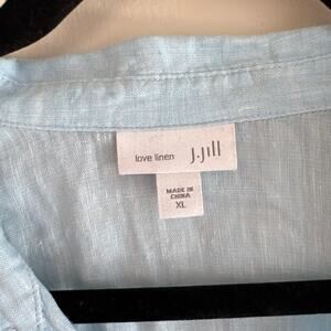J. Jill Love Linen Oversized Shirt Dress Blue Button Front Slit 3/4 Sleeve Sz XL