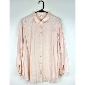 J Jill Love Linen Pale Pink Long Sleeve Button Down Shirt Coastal Natural, XL