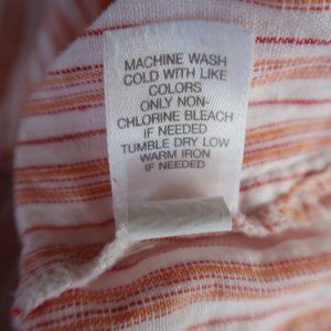 J. Jill Love Linen 3/4 Sleeve 1/2 Button Pink Orange White Striped Tunic