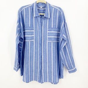 J. Jill Love Linen Relaxed Patch Pocket Striped Tunic Sz L