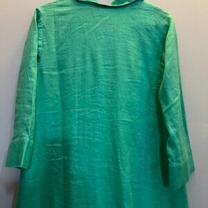 J. Jill Love Linen Shirt Dress, Ocean Green, button down, pockets, slits at bottom. Size M. NEW!