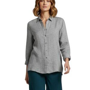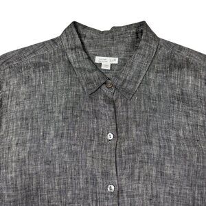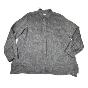 J. Jill Love Linen Shirt SZ L Gray Relaxed Fit Lagenlook Minimalist