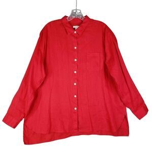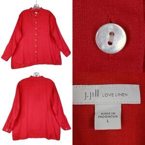 J. Jill Love Linen Shirt Top Red Long Sleeve Size Large L Button Down