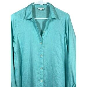 J. Jill Love Linen Shirt Womens Size S Blue Casual Button Up Linen Blouse Top