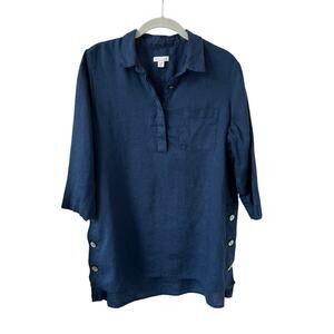 J Jill Love Linen Side Button Tunic Top Blue Women's SP