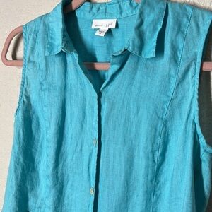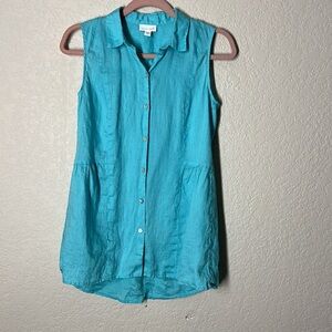 J. Jill Love Linen Sleeveless Button Down Blouse. Light Turquoise. XS. EUC