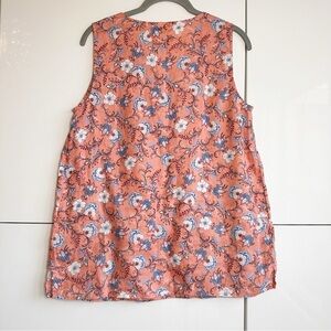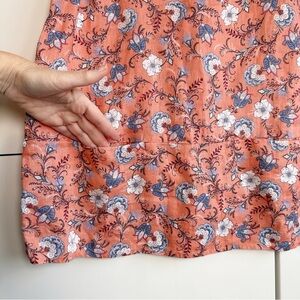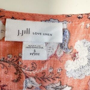 J. Jill Love Linen Sleeveless Top Orange Floral Size Small Petite Pockets