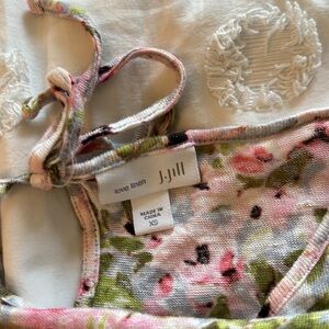 J. Jill Love Linen Springtime Floral Keyhole Tie Back Tunic Blouse Top XS