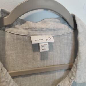 J. Jill women's light grey 100% linen button up shirt. Long sleeves.