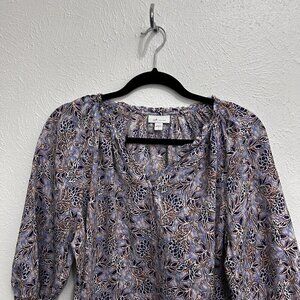 J. Jill Love Linen Sz S V Neck Purple Lotus Vines 100% Linen Peasant Top Blouse