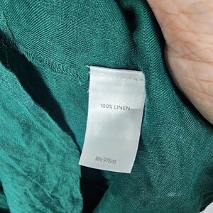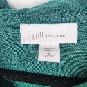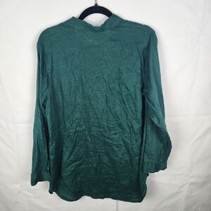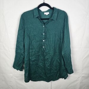 J. Jill Love Linen Tab-Sleeve Popover Half Button-down Tunic Hunter Green SZ MP