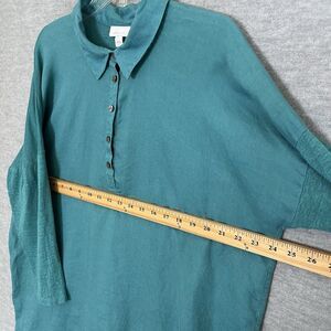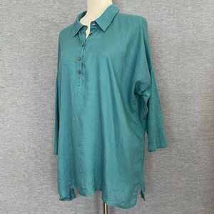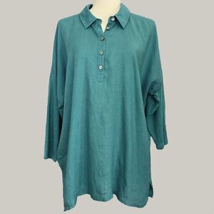 J Jill Love Linen Teal Tunic Size L Lagenlook Coastal Collared Beachy Minimalist