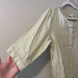J Jill Love Linen Top Lagenlook Boho Artsy Pinstripe V Neck 3/4 Sleeve Peasant S