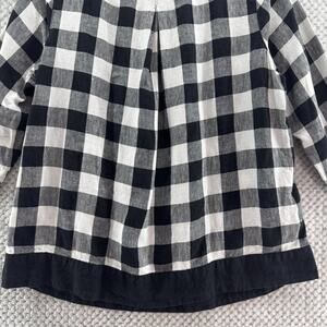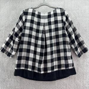 J Jill Love Linen Top Women M White Black Checked Boat Neck Lagenlook 3/4 Sleeve