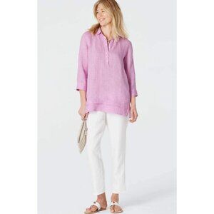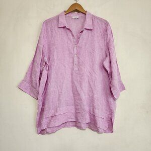 J Jill Love Linen Tunic Top Collared 1/2 Button Pink in Womens size XL