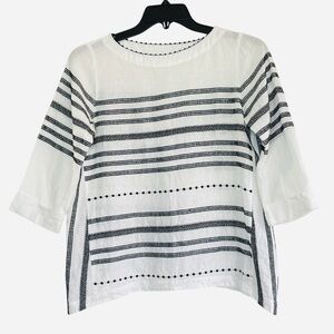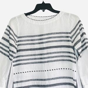 Jill Love Linen Stripe Tunic Top in Black Embroidered Stripes Size XS