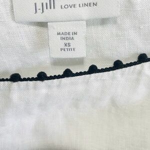 J Jill Love Linen Tunic Top XS Black Embroidered Stripes Boho Coastal Relaxed