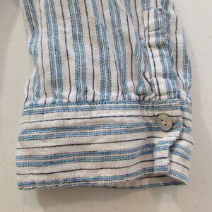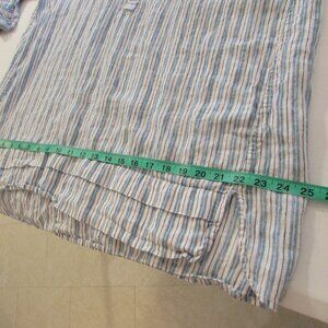 J Jill Love Linen White Blue/Black Striped Hi-Low Tunic Large Tall