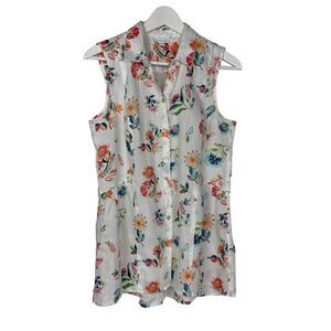 J. Jill Love Linen White Floral Peplum Tunic Sleeveless Top Women's Size Small P