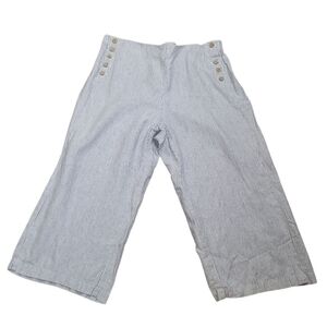 J. Jill Love Linen wide leg crop white & blue striped sailor pants. Brown wood buttons at front. Material is 100% linen.