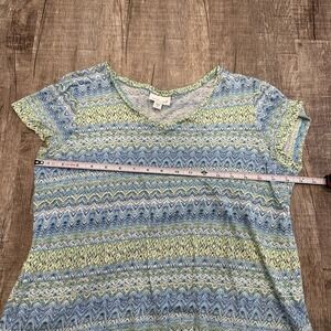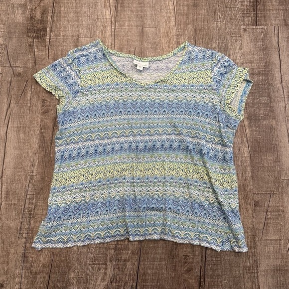 J Jill Love Linen Womens Short Sleeve Tee Geometric Print 100% Linen Sz M Flowy