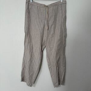J Jill Love Linen Women's Wide Leg Pull on Drawstring Striped Pants Size Large