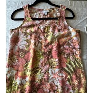 J Jill Love Linen XS Pockets A-Line Dress Tropical Floral Vacation Resort Cruise