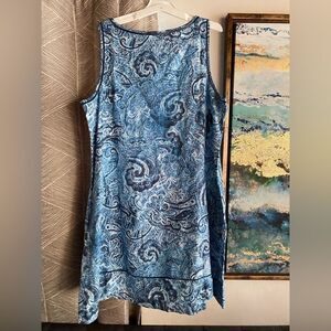 J. Jill Love Linen Dress Women Sz Large Petite Indigo Blue Paisley Waves A-line