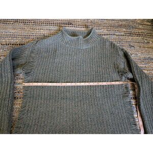 J. Jill Women's M Oversized Mock Neck Sweater Green Beige Mixed Media Cable Knit W Open Knit Sides High Low