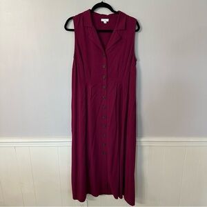J. Jill Magenta Sleeveless V-Neck Lapel Collar Button Front Midi Dress Sz M GUC