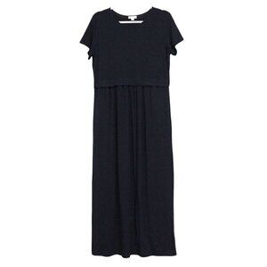 J Jill Maxi Dress Size Medium Navy Blue Stretch Casual Modest Classic Coastal