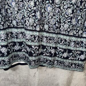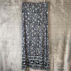 J Jill Maxi Skirt M Tall Blue Floral Boho Print Rayon Stretch Cottagecore