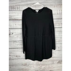 J Jill Medium Black Crewneck Sweater Tunic Wool Stretch Long Line Minimalist
