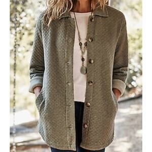 J. Jill Medium Shacket Quilted Jacket Medium Fall Sweater Cozy Staple Sage Comfy